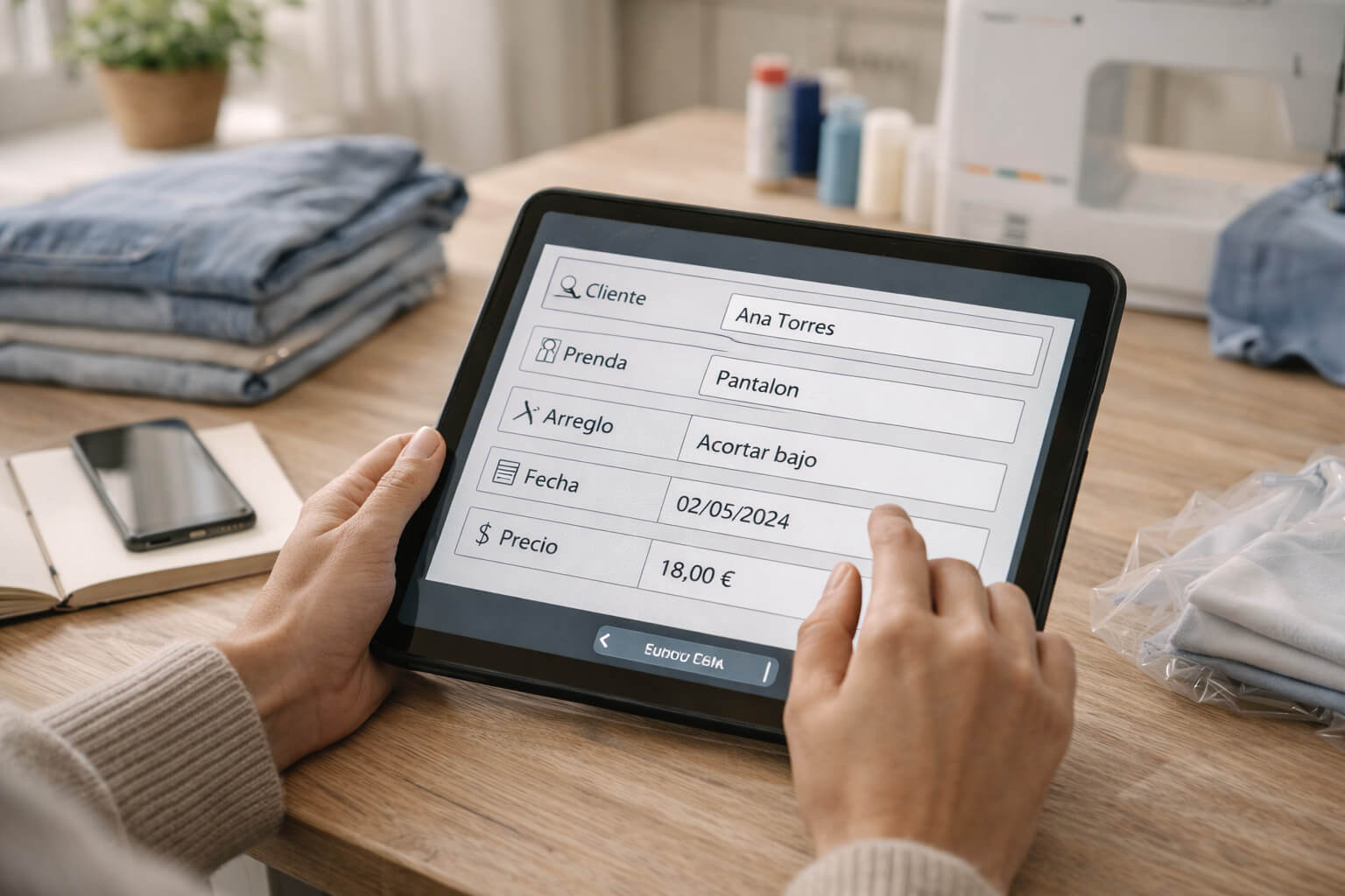 Si quieres dar un paso más allá y evitar depender de papeles o notas dispersas, existen herramientas diseñadas específicamente para talleres de arreglos de ropa.